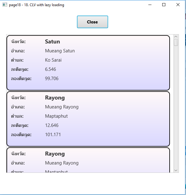 In the loop going over the list a panel (or pane in B4J) is created that holds the views from the item layout. Here’s some code from page3 (B4J):