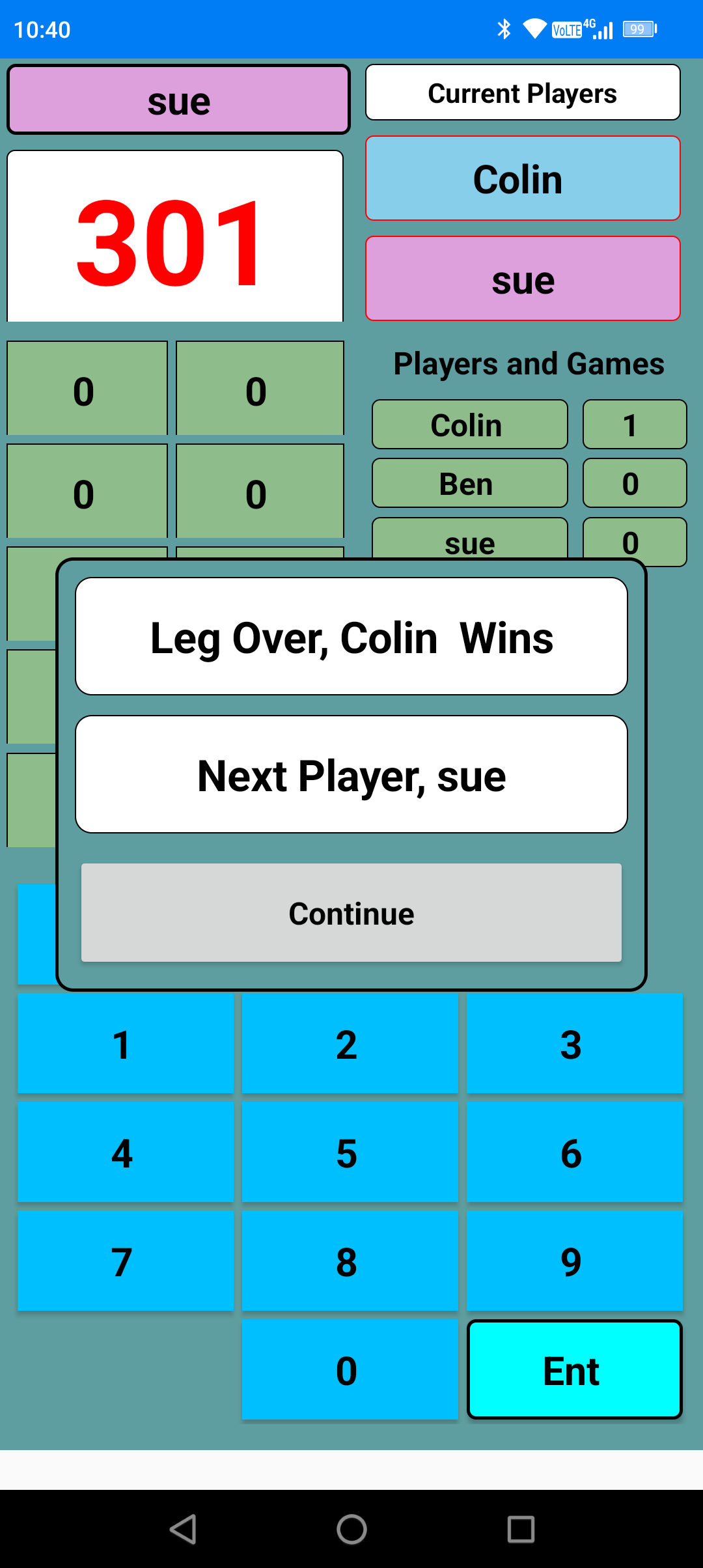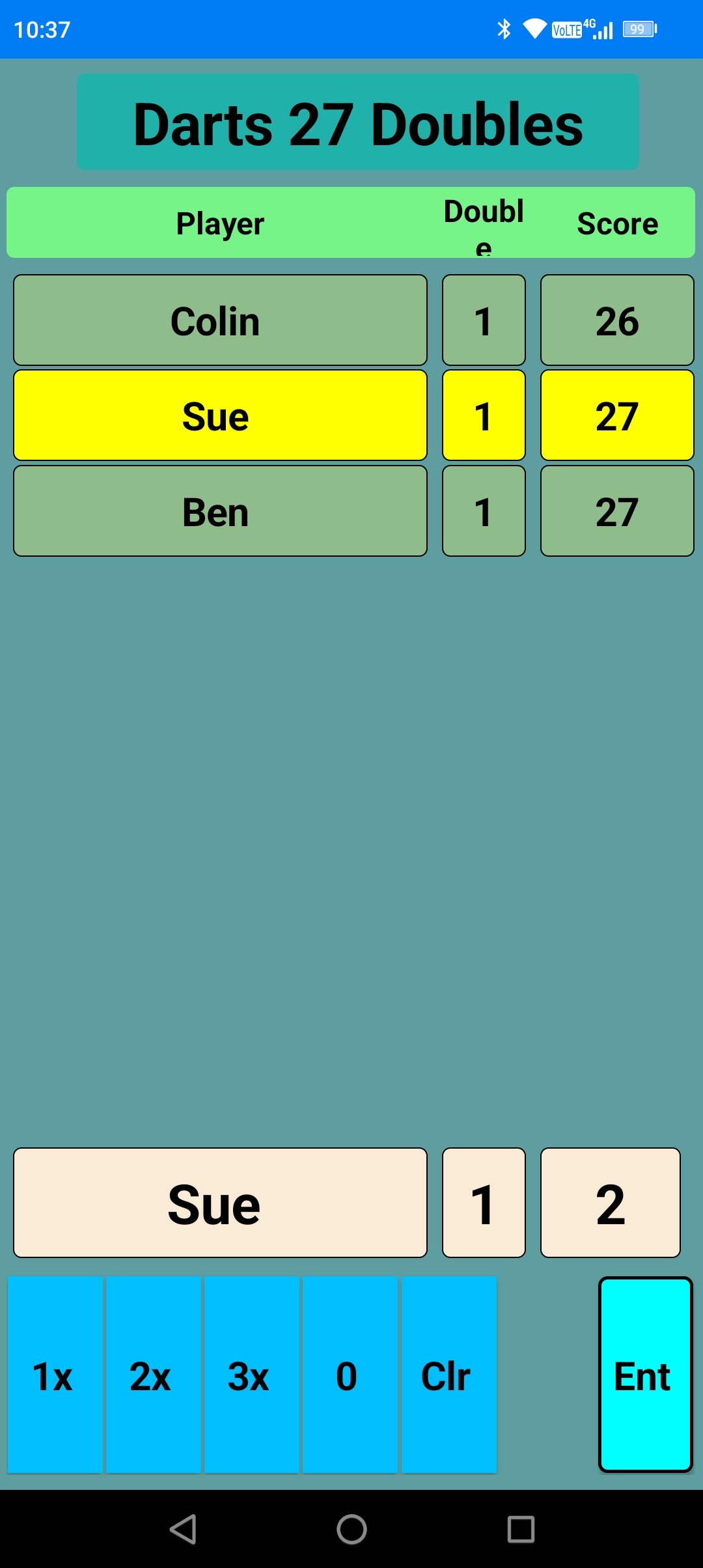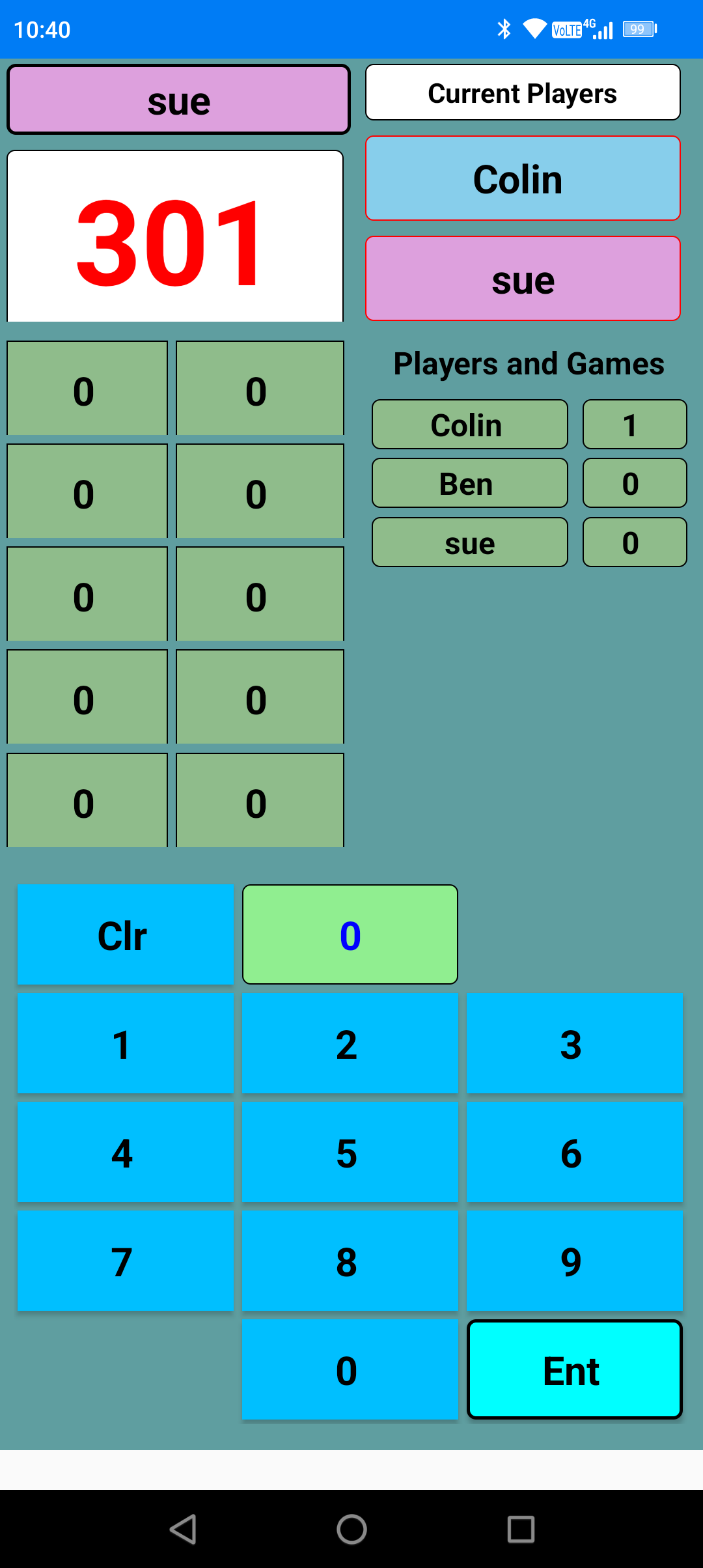 My latest app is done for my local darts team who play in the Shrewsbury League. It's a basic scoreboard that switches between the two players automatically making scoring the game very easy.
