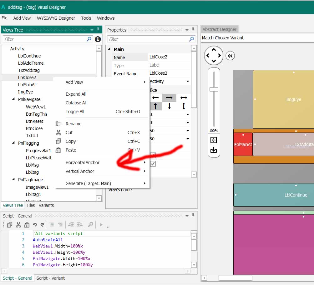 It happens that a view is not clickable and can not be clicked on the designer layout.