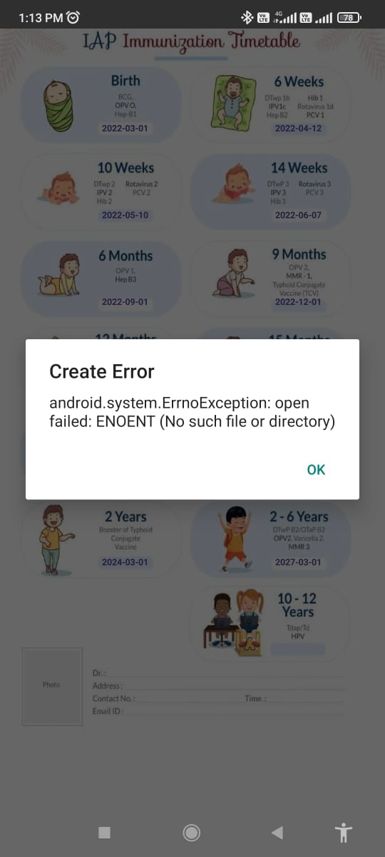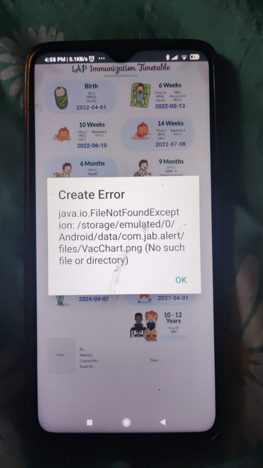 We have a peculiar issue that it works fine on some mobiles quite well but on others it gives error messages (please see attached images) stating that there is an issue accessing directory or files. This happens when the vaccination charts or other info charts it creates are accessed.