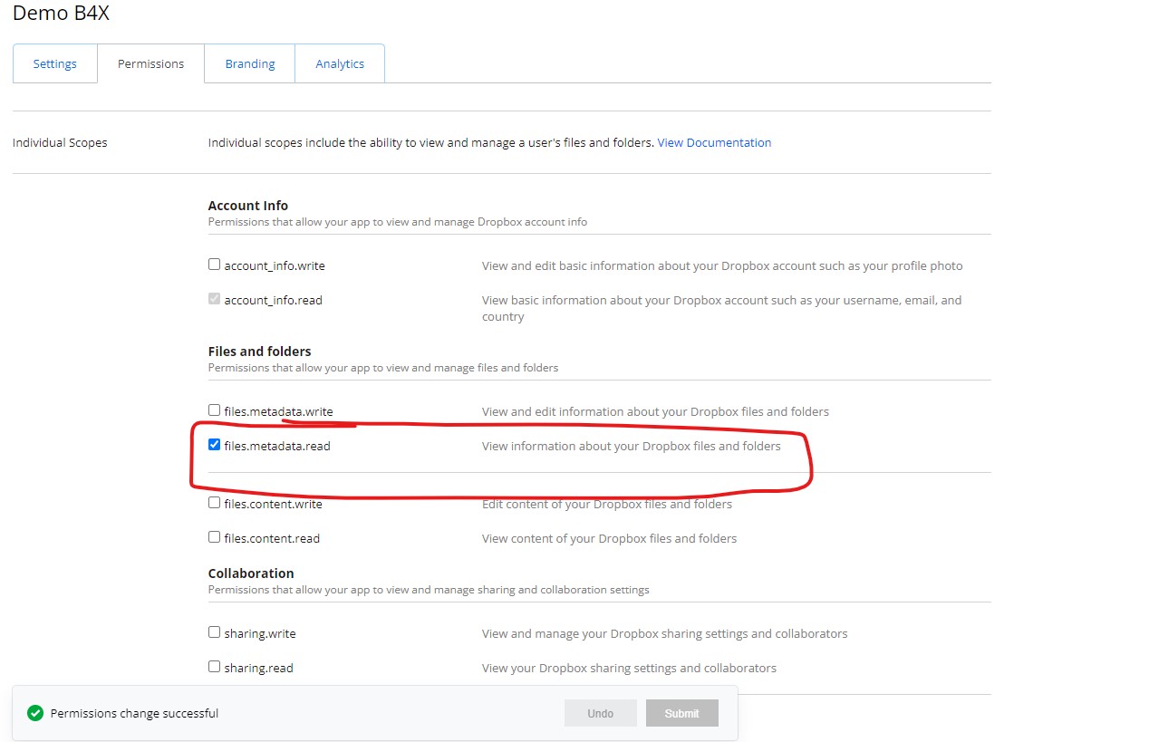 dpx.Initialize(Me, "dpx", Appkey, "account_info.read account_info.write contacts.write file_requests.read file_requests.write files.content.read files.content.write files.metadata.read files.metadata.write sharing.read sharing.write", AppSecret,  File.DirData("Dropbox"))