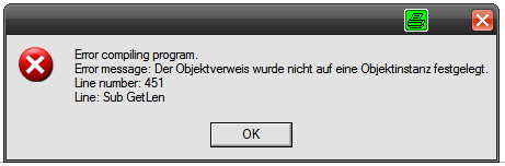 Sub GetLen <--- Here the compiler produced the error: Der Objektverweis wurde nicht auf eine Objektinstanz festgelegt.