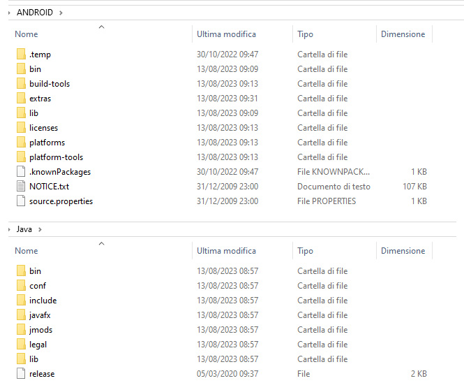 correttamente Jdk o qualcos'altro . Allego le immagini delle due cartelle di installazione , cosa manca?