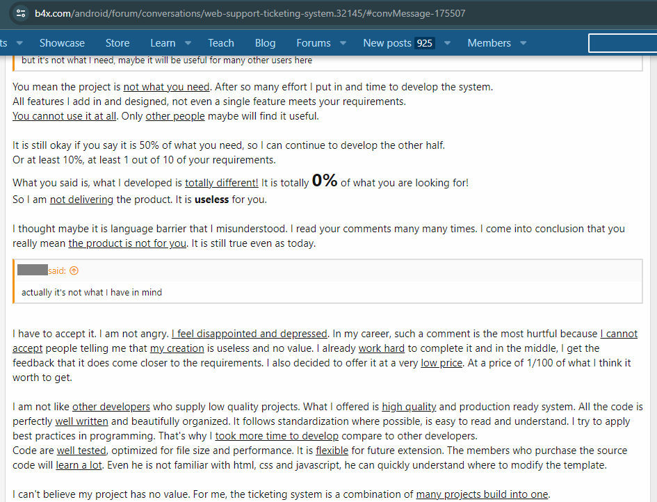 I didn't shared the whole conversation. It may seems unfair. It will be a long story if I write the details. I don't want to make it obvious.
