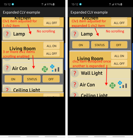 - clicking on the buttons in the expanded clv2, updates imageviews on clv2 and collapses clv2 item