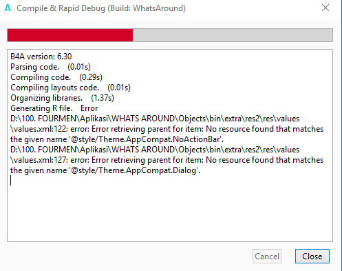When add Facebook.jar and Facebook.xml into B4A then compile it , I have this Error ...