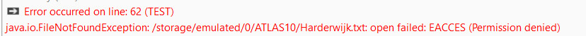 Attached is a version of your test app with a cleaned up Main and manifest. UNINSTALL YOUR APP before trying it to reset the permissions. Note that requesting PERMISSION_WRITE_EXTERNAL_STORAGE asks the user for access to "photos and media" which if you allow will return True but the ATLAS10 folder will not be created as this does not give you access to the full file system. Targeting SDK 28 it would ask for access to "photos, media and files" - note the difference - and ATLASS10 will be created.