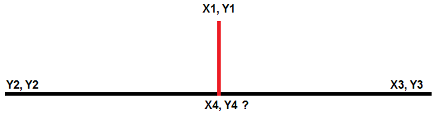 I want to know the latitude and longitude of the nearest point between 2 known points (X4, Y4. In other words, my vehicle (X1, Y1) is outside the route of the two points and wants to travel the shortest way to reach the nearest point. any formula or solution appreciated and will pay $30 for your successful efforts.