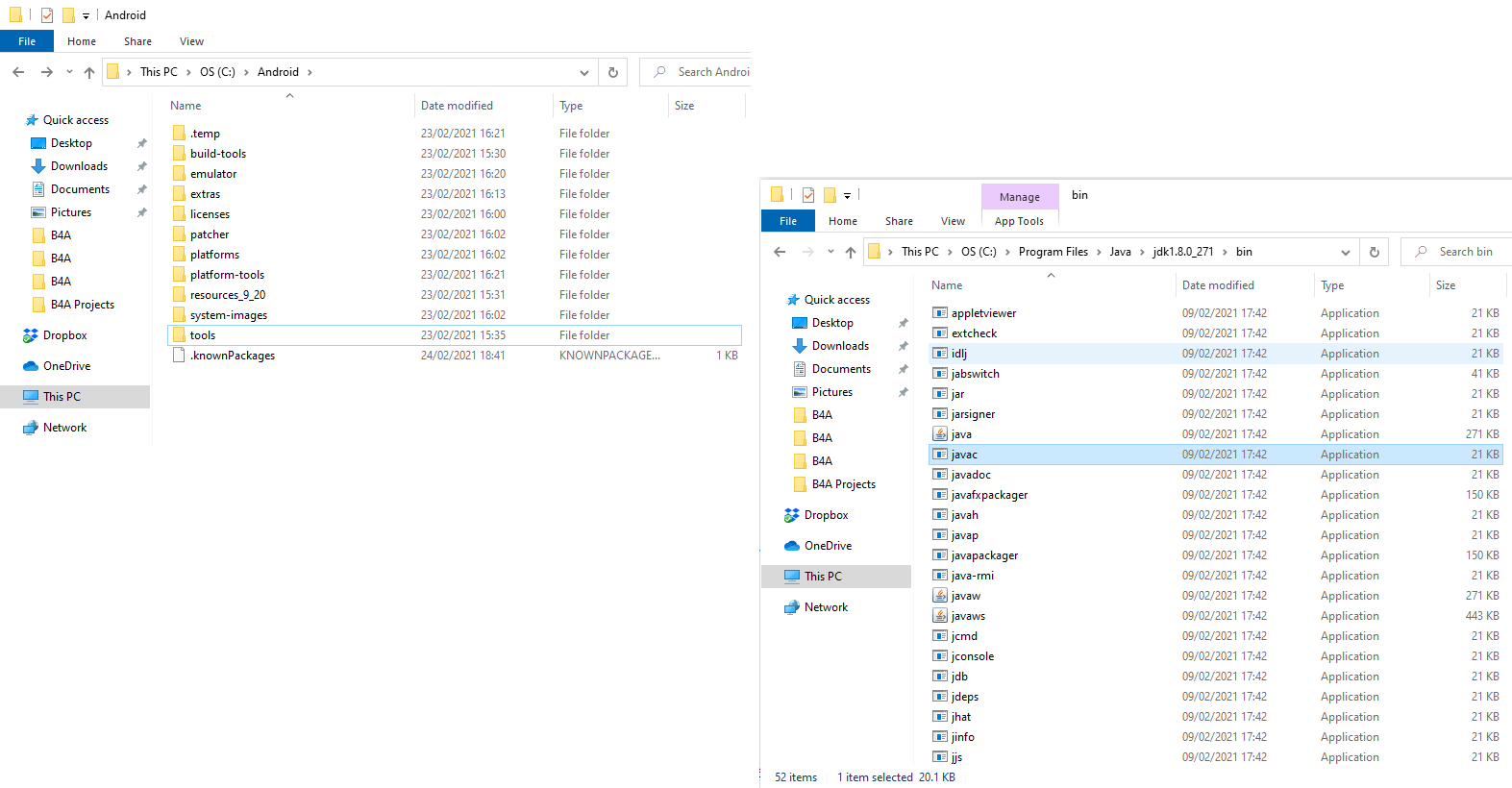 I have also downloaded android studio and eclipse to see if they would fix any potential missing or misconfigured items in the android folder