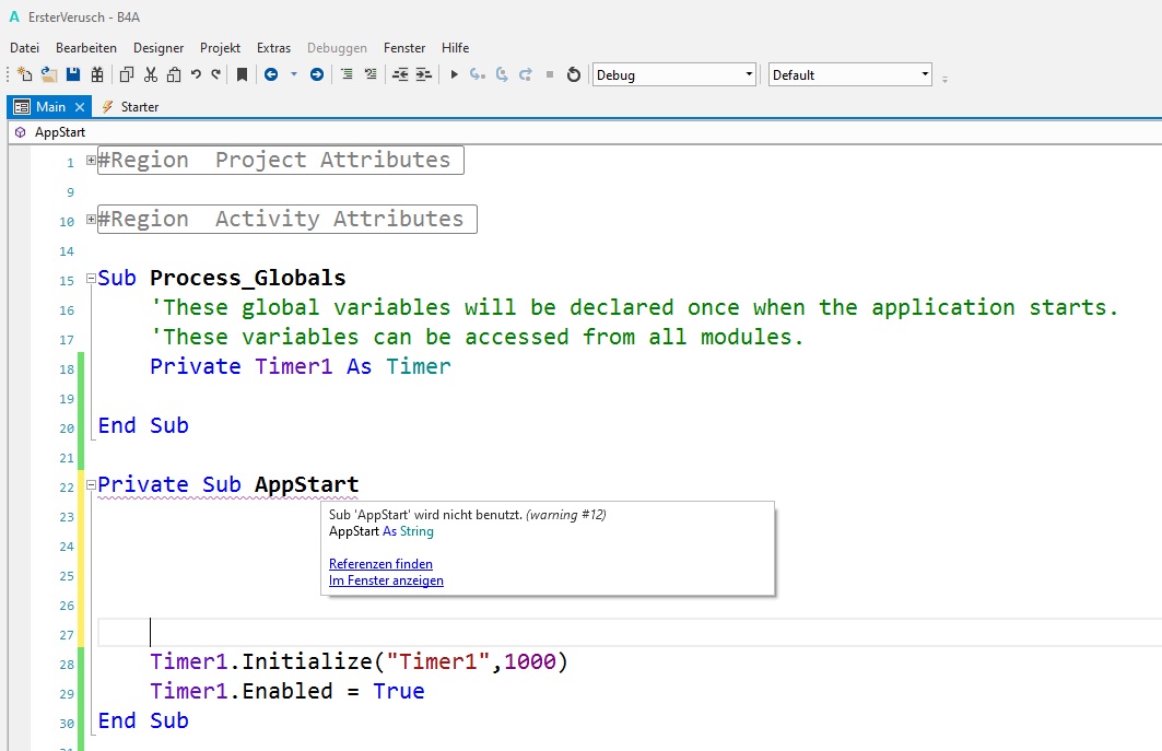 Ich möchte gerne, sobald man die App startet, das eine Sub aufgerufen wird z.B Sub AppStart.