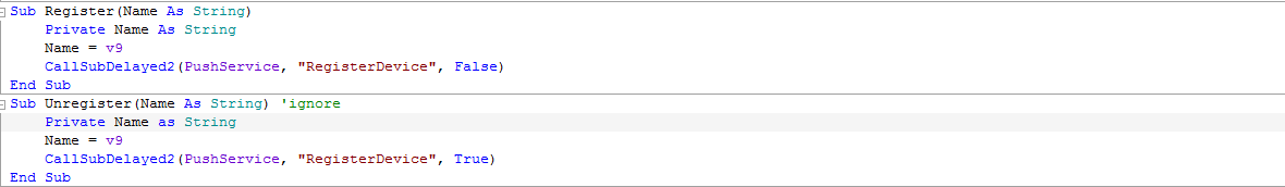 Sub RegisterDevice (Unregister As Boolean)
