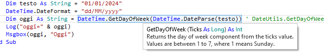 date senza nessun risultato, ho inserito la libreria iDateUtils, c'è qualche altro modo per trovare il giorno della settimana su B4i?
