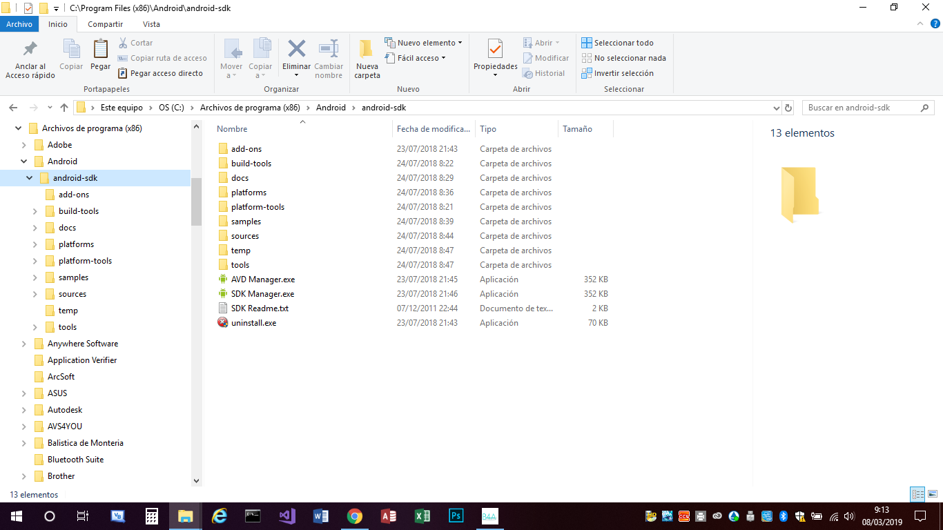 y yo no tengo en la carpeta android-sdk la subcarpeta extras