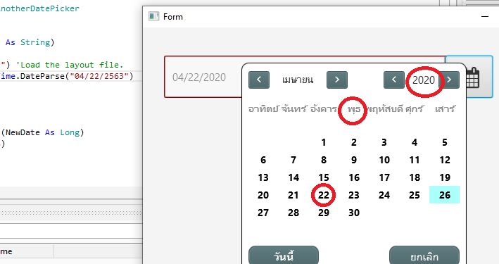 My example today is The Wednesday 22 April 2020 ,I need to change Wednesday 22 April 2563.
