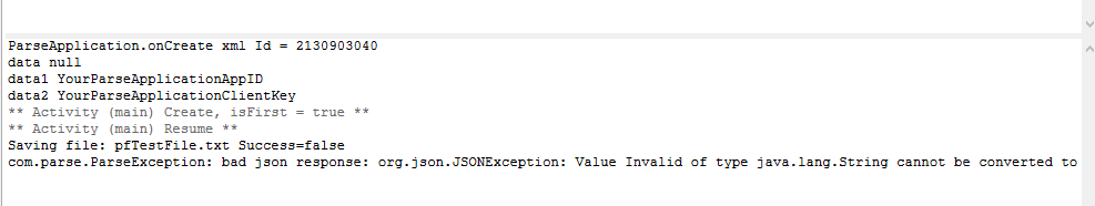 The First, I 've done all of steps,downloaded file from parse.com, renamed file and then copied it into the custommemberlibs folder. Copied Agraham's library at the same directory. The last time,I created res.xml which has Agraham'coding and set it read-only and replace it at res directory. Now I have error message about saving file pfTestFile.txt Success=False ,I don't know to conitue these.