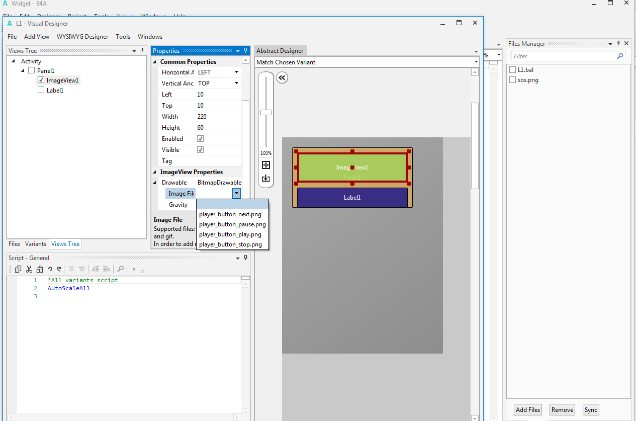 I will use just an imageview and a label and I erase the images from the file directory and add a file name SOS.PNG and in the file list I add the new file and erase the others.