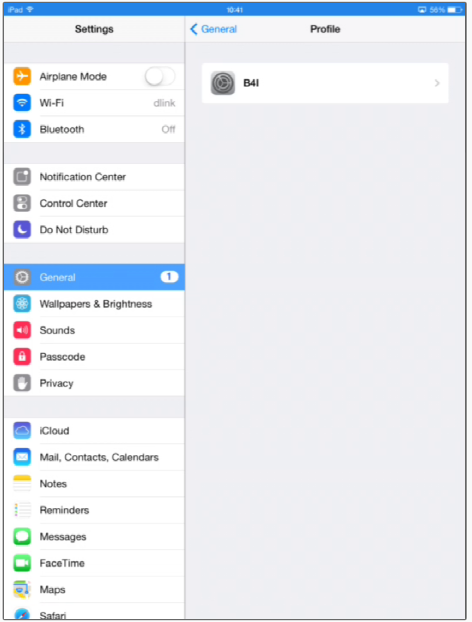 1. Make sure that the B4I certificate is installed. You can check it under Settings - General - Profile: