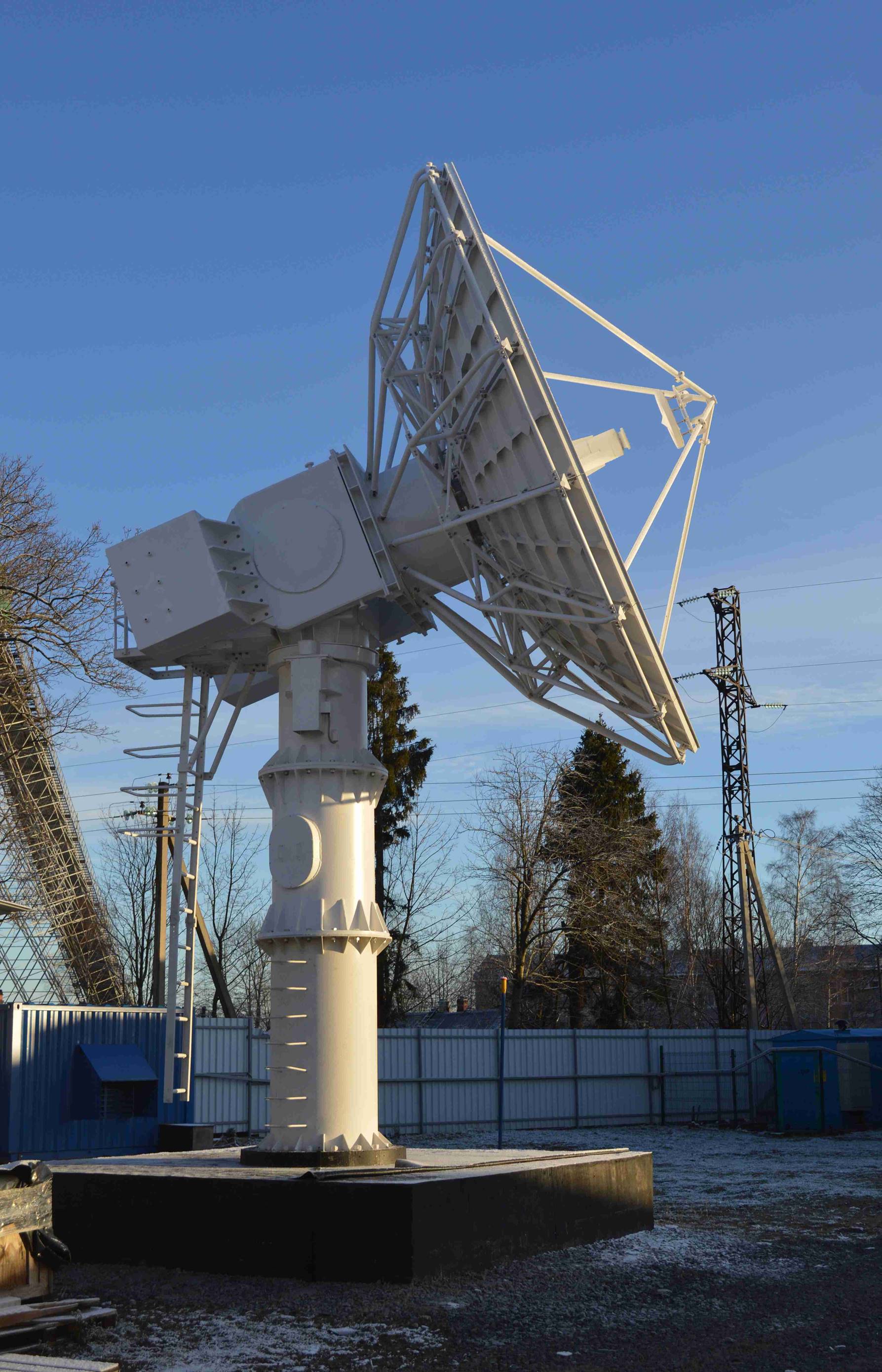 The dish is now 20cm wide, has a real paraboloid shape and is moved by two stepper motors fully hidden into the pedestal of the antenna