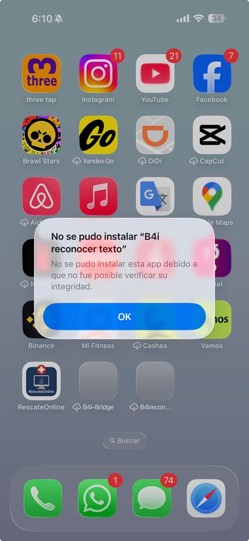 Dear Sirs, I have encountered the following issue when trying to install B4i-Bridge on my phone. The following message appears: “B4I Recognize Text could not be installed” — this app could not be installed because its integrity could not be verified.