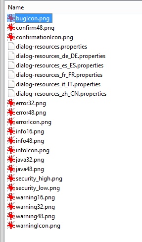 Checking the sourcecode, you are accessing images written with a small i (e.g. warningicon) but looking into the resource directroy, those images are written with a capital I (e.g. warningIcon).