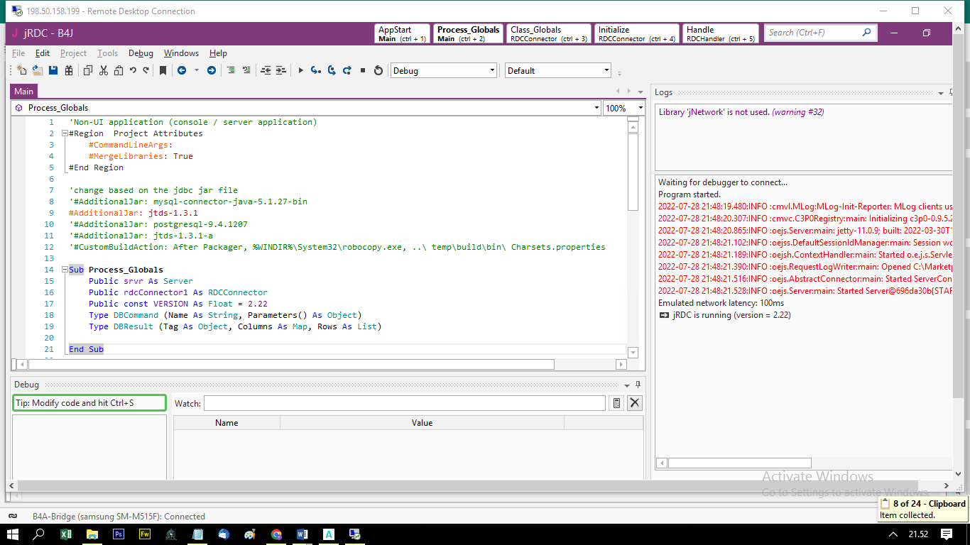 anywheresoftware.b4a.keywords.Common.LogImpl("065545",("jRDC is running (version = "+anywheresoftware.b4a.keywords.Common.SmartStringFormatter("1.2",(Object)(_version))+")"),0);