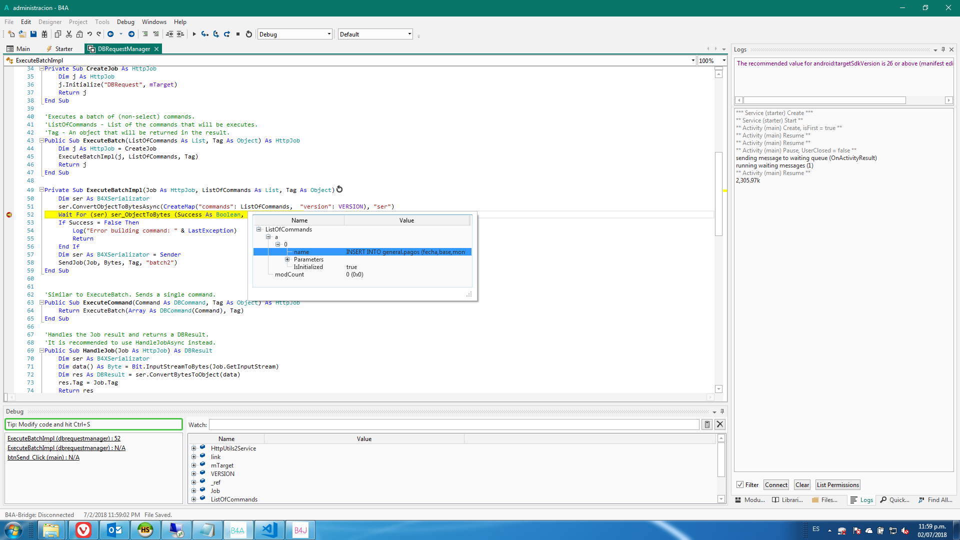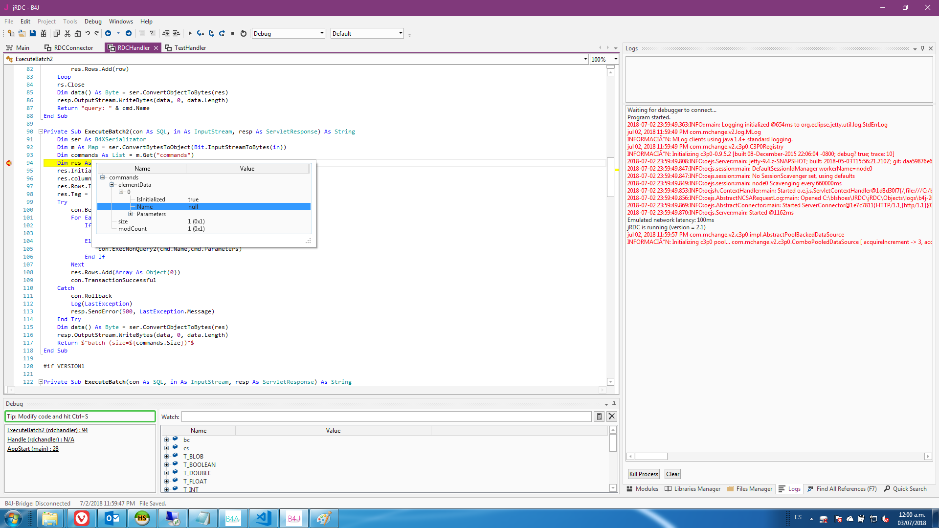 I have a problem with jrdc2, please look at the images, dbcomand.name value is ok when converted with the b4xSerializator but when it arrives at the server the value is null.