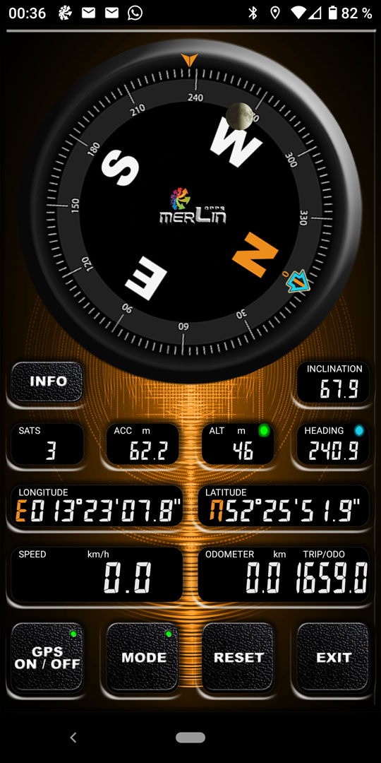 A proposito, la strana "biglia" a ovest non è un errore dell'immagine, ma la posizione della luna e la sua fase. Sono davvero orgoglioso dell'algoritmo. Trigonometria sferica, non iniziate mai con essa, impazzirete...