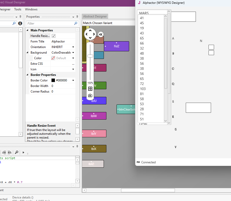 If there's a way to save the size/positions of the views after the script has placed them that would be great. (Also a wish would be to have Designer Script loops to be able to iterate over a list of views and space them evenly, instead of having to specify each view individually in the script.)