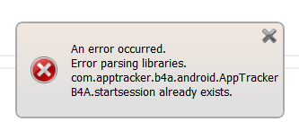 When I try to link the library "ApptrackerB4A", I get this message flashing out
