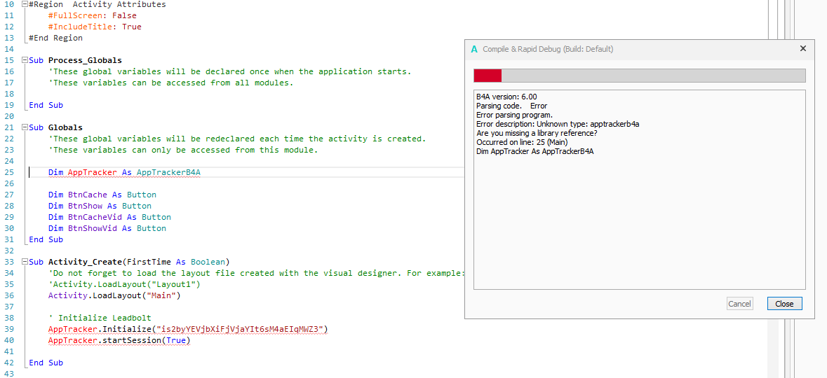 I am trying to implement the latest SDK from Leadbolt using the latest version of B4A (version 6).