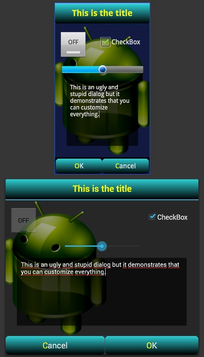 CustomDialog (under Gingerbread and JellyBean):