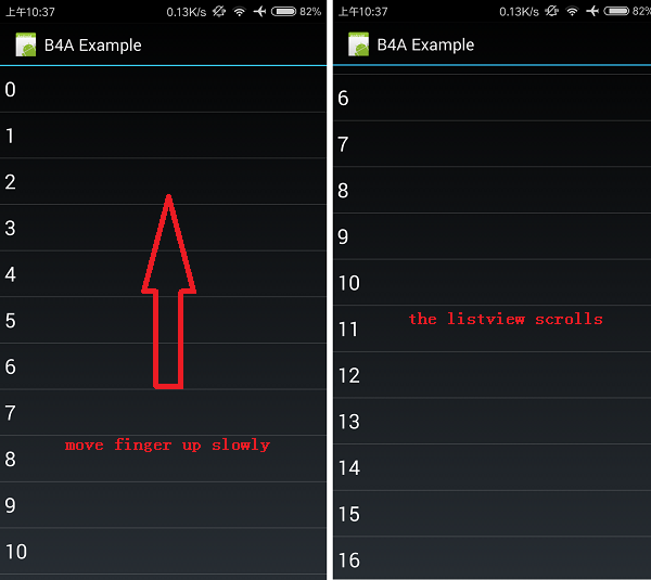 As you see, there is only one line "Return True" in sub Gesture_onTouch. Then the listview can not scroll with finger and can not be clicked. But it doens't work as it should be.