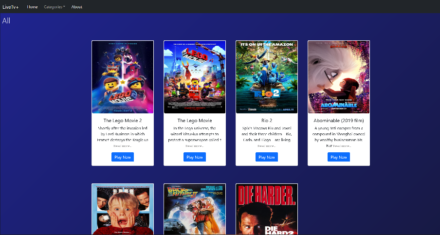- you can browse between different categories and watch live movies