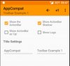 Note that "Use as main ActionBar" is checked to use this Toolbar as the main ActionBar for the Activity. You can only use one Toolbar as the Activity ActionBar.
