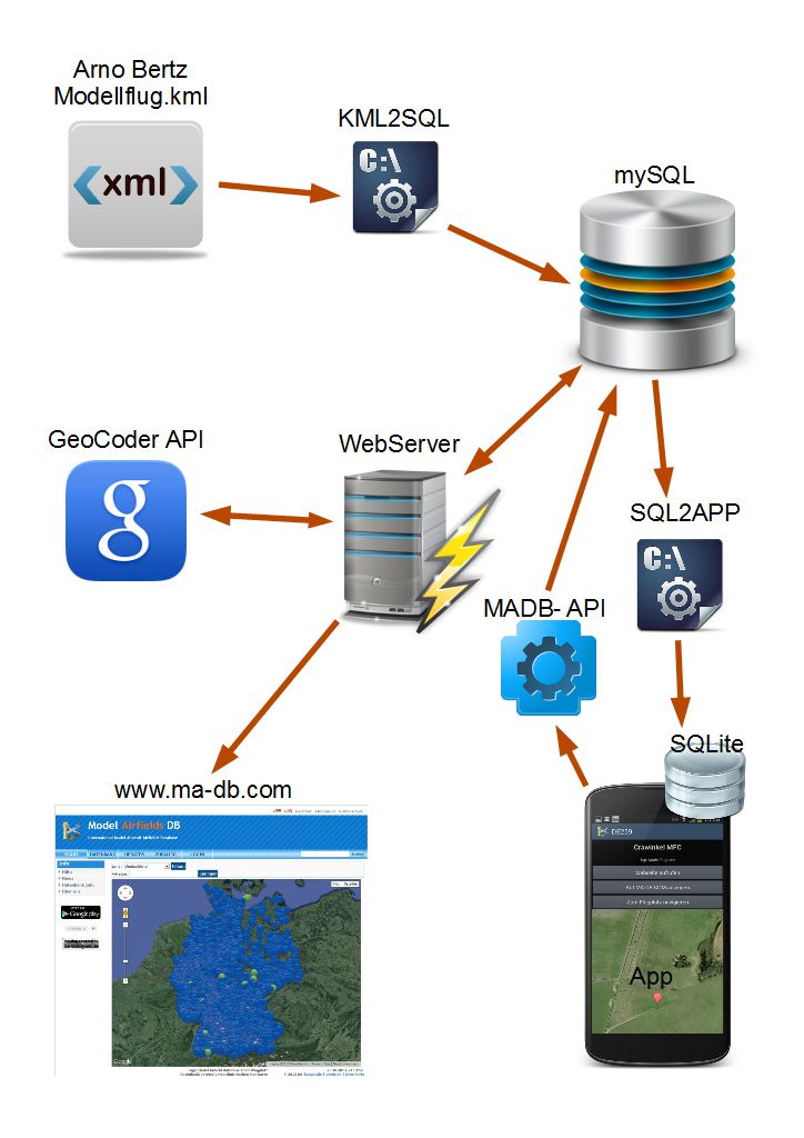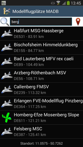 Our App uses the network location service to show all nearby located model airfields. Users can post notes to airfields, report a new one, set places as favorites.....