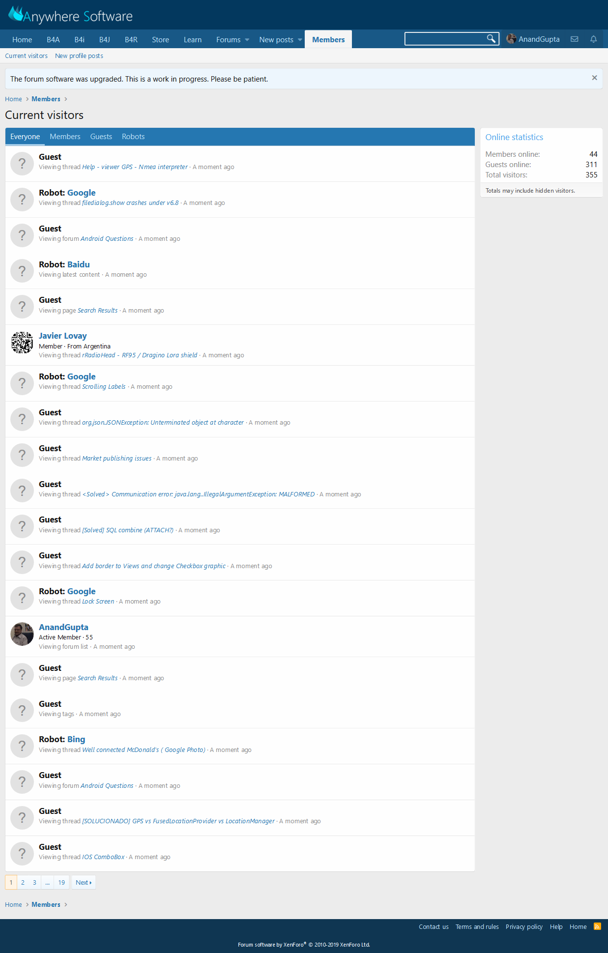Guests is normal. Not everyone uses an account and contributes: leeching is common on forums. Robots, of the somewhat 20, most are bing/google: people do use the normal browser search engines to find content. The others have minutes between each search so that would be very poor data mining. Some B4X users have written tools to find stuff so it looks they could be them. And I'm sure there are mechanisms in place that would detect weird things (e.g. like as DoS filter).