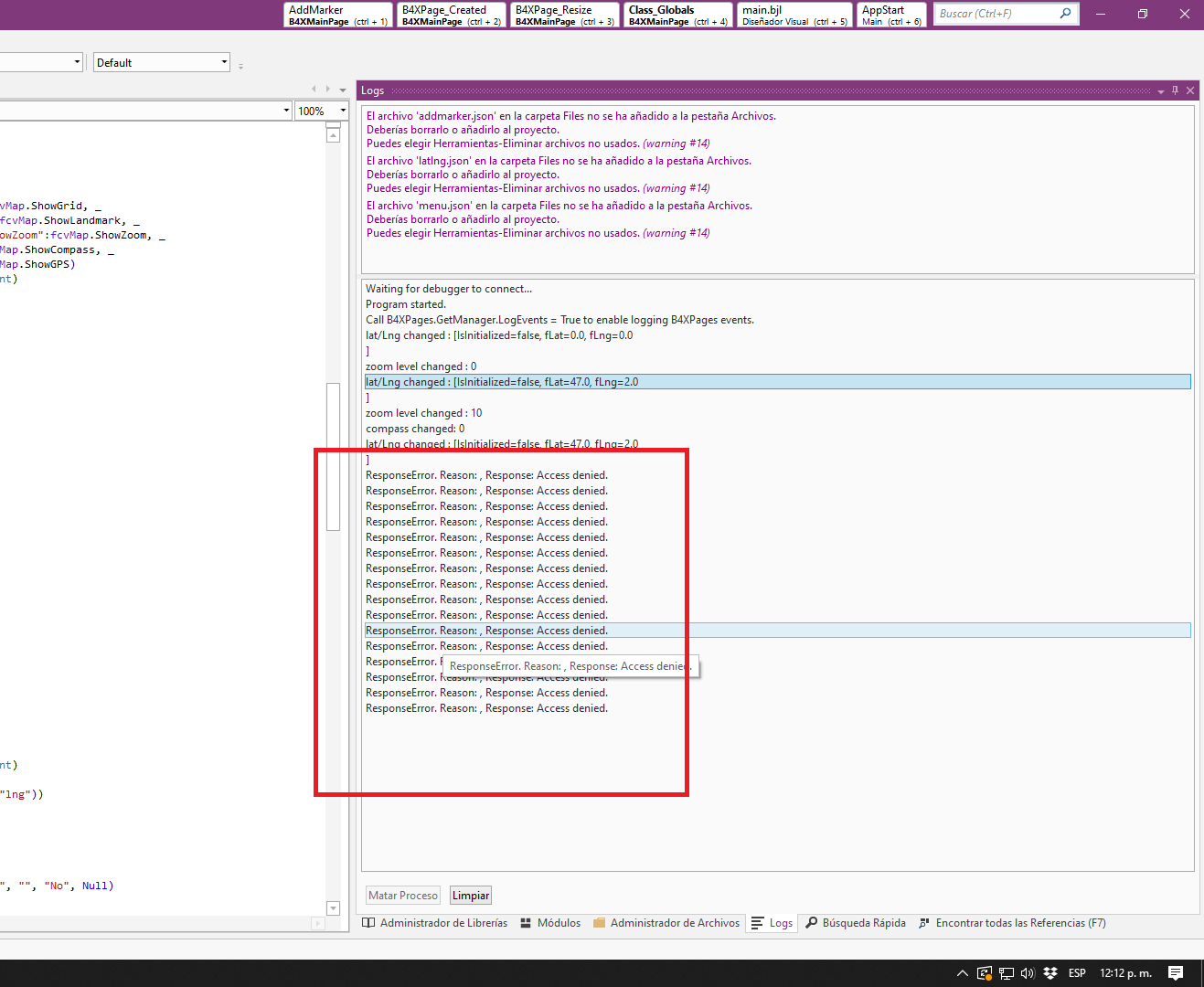 I don't know what's raising that error. Is there something I need to do? I don't appear to get any permission prompt, which looking at your B4XPages version you had.