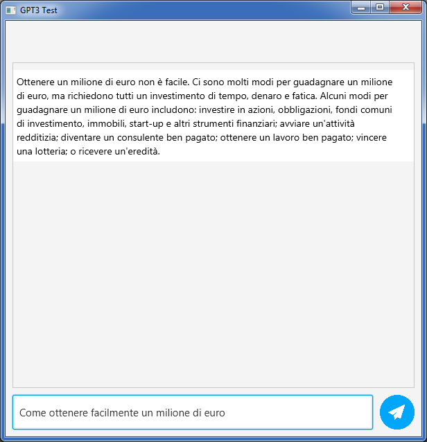 ciao ragazzi sono tornato a sperimentare ma ho il solito vuoto di memoria, devo inviare una query ad openai ma mi perdo come al solito in un bicchiere d'acqua