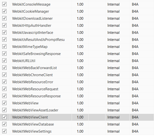 Private Sub WebkitWebView1_OverrideUrl (url As String) As Boolean 'Works from API level 1 and above.