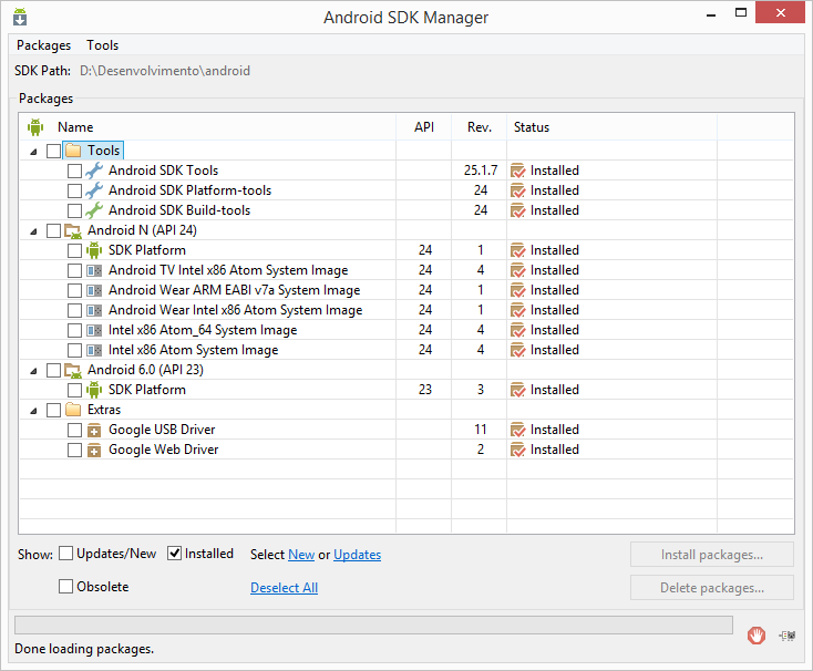 I unzipped the android-sdk_r24.4.1-windows.zip in d:\desenvolvimento\android