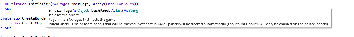 Good day. Actually I didn't know whether to place this query in the Game or B4i forum, since it only happens to me with B4i, and as the title of this thread says, when creating a new Panel1 as B4XView and trying to use the events of this new panel TOUCH_ACTION_DOWN, TOUCH_ACTION_MOVE or TOUCH_ACTION_UP these do not work, the Iphone never enters to process these routines. I tried declaring Panel1 As Panel and using ACTION_DOWN, ACTION_MOVE, ACTION_UP, but the same thing happens, that is nothing.