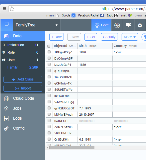 You create an account on Parse.com and then create what they call “Applications” which would usually correspond with individual Android applications but don’t have to, so several different Android applications could access a common body of data in a single Parse application. Within Parse applications there are “Classes” of data which look much like a database table and contain ParseObjects which look like an individual row of data in a table.