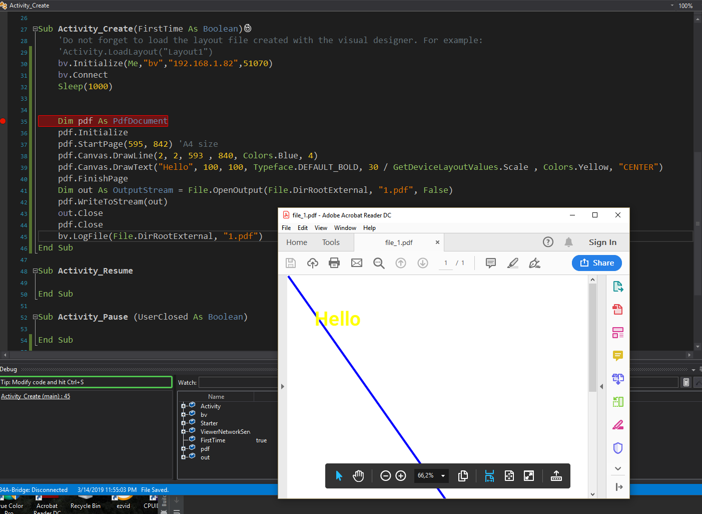 Dim out As OutputStream = File.OpenOutput(File.DirRootExternal, "1.pdf", False)