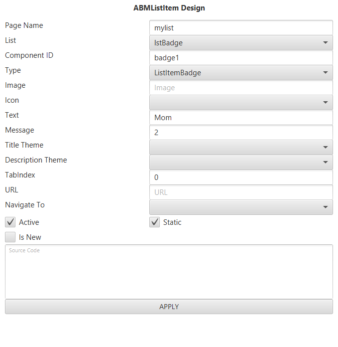 As noted above, only the ListItemType has been changed and the ABMListItem properties changed to meet badge requirements by changing Text, Message and Is New properties.