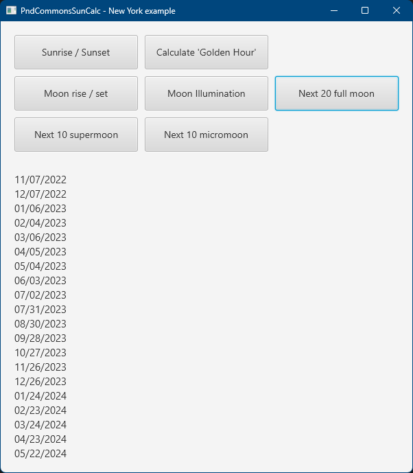 HowManyToFind - How many result you want to be returned in the List- MoonPhaseSuperMoon (Year As Int, Month As Int, Day As Int, HowManyToFind As Int) As List