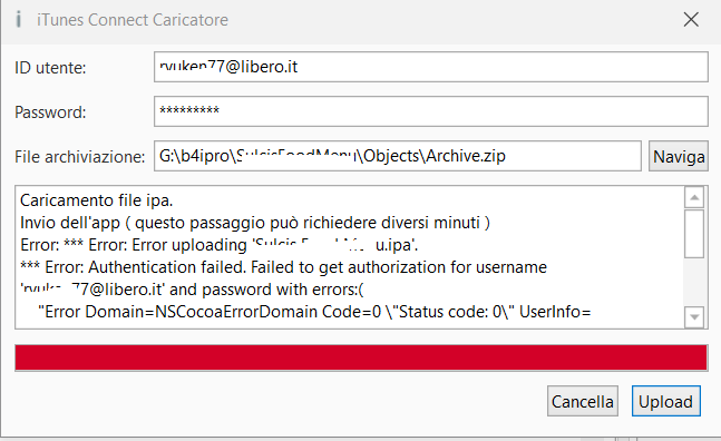 Itunes Connect caricatore rileva sempre lo stesso errore.