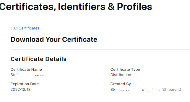 4 scarico il nuovo certificato e lo installo nel mac con doppio click