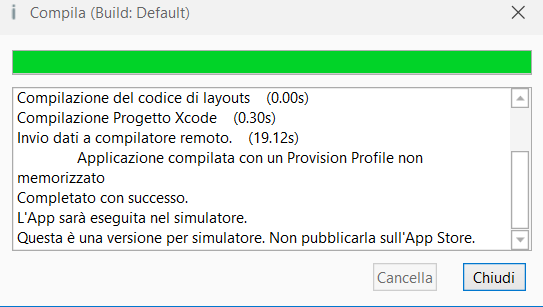 Questa è una versione per simulatore. Non pubblicarla sull'App Store.