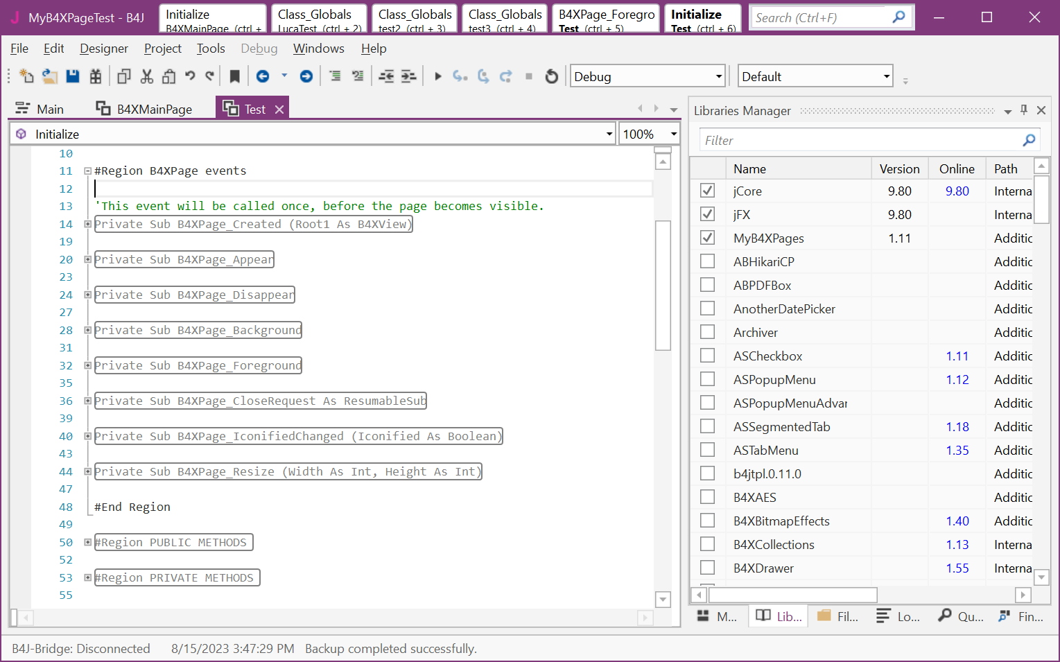 Now it works. Thanks, @aeric, yes, that was what I meant, being able to add multiple classes in a single library (obviously various classes, certainly not two basic B4XPages).