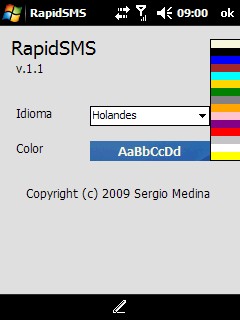 En el archivo rapidsms.ini se encuentran los valores del color de la fuente, el fondo y el idioma.